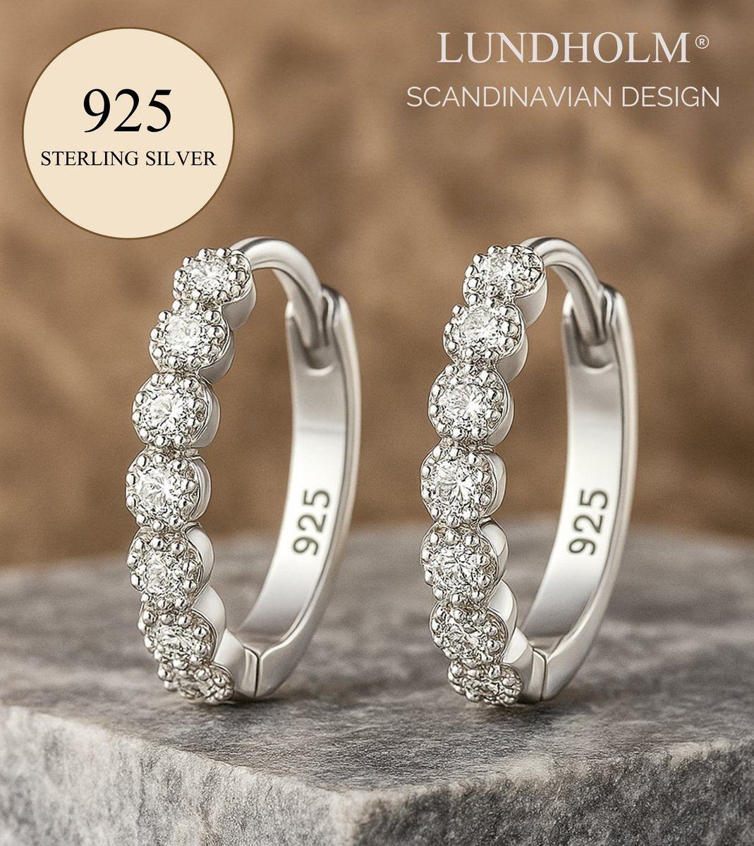 Lundholm Luxe Kleine Oorringen Dames – 925 Sterling Zilver – Met Zirkonia Steentjes (Ø 11 mm) – Elegant & Tijdloos – Hypoallergeen – Inclusief Luxe Geschenkverpakking