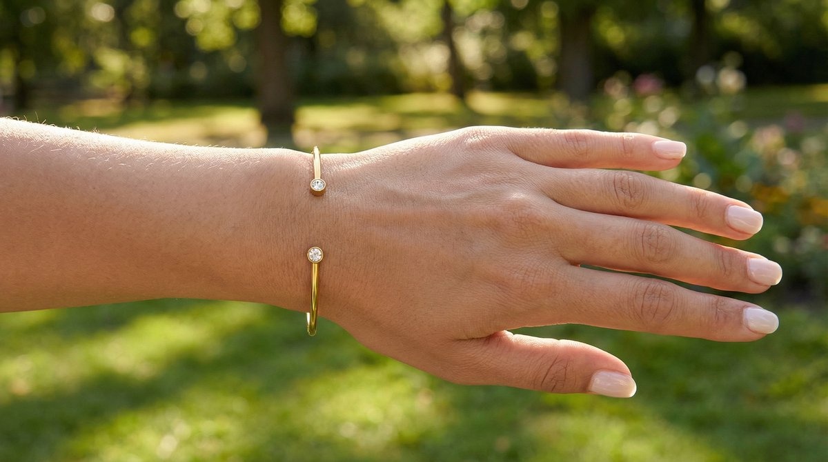 Dankzij het open ontwerp is de armband eenvoudig om te doen en licht verstelbaar voor een comfortabele pasvorm.