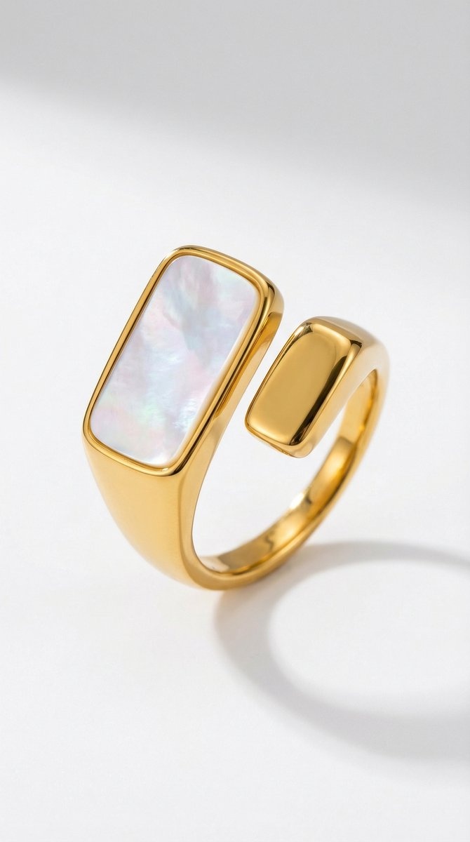 De ring is vervaardigd uit premium stainless steel en afgewerkt met een hoogwaardige 2.5 micron PVD gold plated coating. Deze extra dikke plating zorgt voor langdurige glans en uitstekende kleurvastheid. De Jiske ring is hypoallergeen, waterproof en geschikt voor dagelijks dragen.