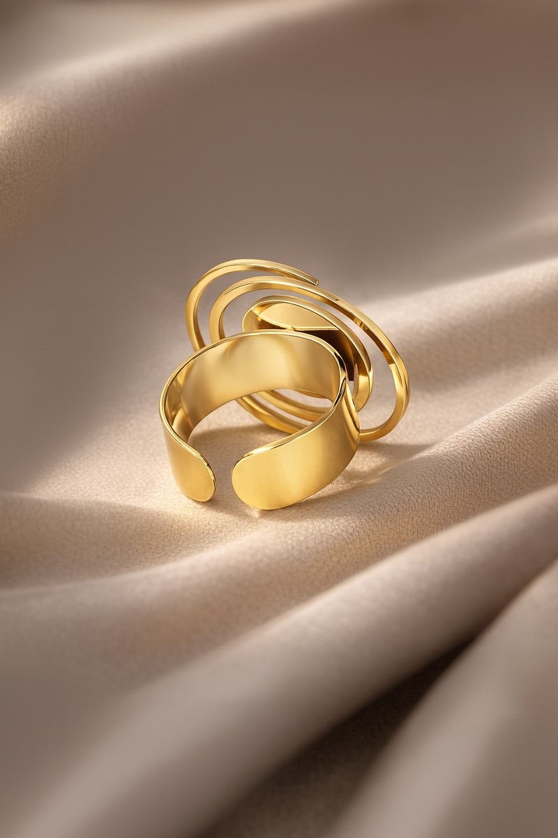 Lundholm Ring Dames – Premium Stainless Steel Gold Plated – Goudkleurige Grote Statement Ring (One Size, Verstelbaar) – Waterproof & Hypoallergeen – Inclusief Luxe Geschenkverpakking