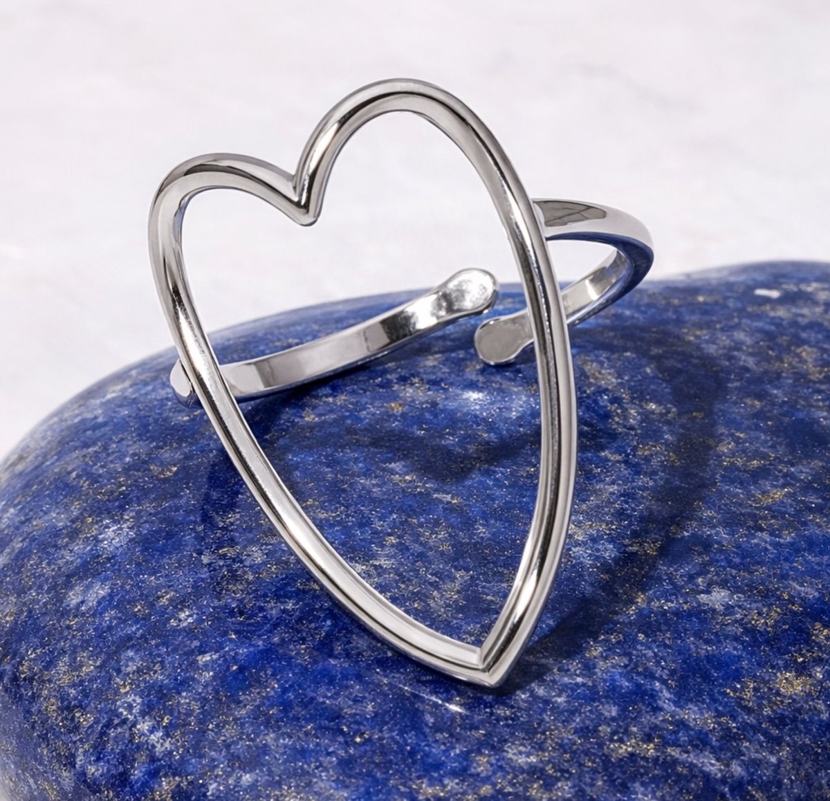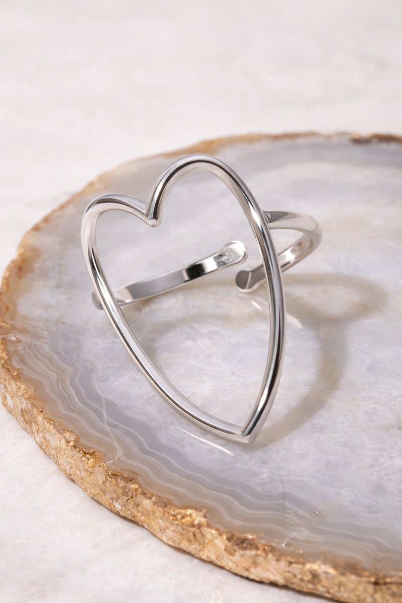 Lundholm Ringen Dames Zilver Kleurig Hart - Zilveren Hartjes Ring Dames – Premium Stainless Steel PVD Zilver Plated Jewellery – Verstelbare Statement Ring (One Size) – Luxe Cadeau voor Haar - My Joliene Serie - Valentijn Cadeau