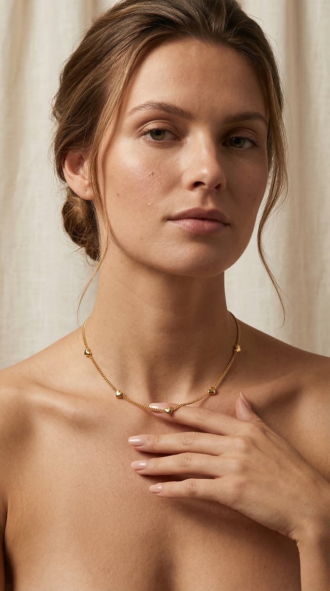 De Lundholm Josie ketting is een verfijnde en elegante ketting met kleine subtiele hartjes die een romantische en stijlvolle uitstraling geven. Het minimalistische design en de fijne ketting zorgen voor een zachte, vrouwelijke look. Scandinavisch design dat elegantie en eenvoud perfect combineert.