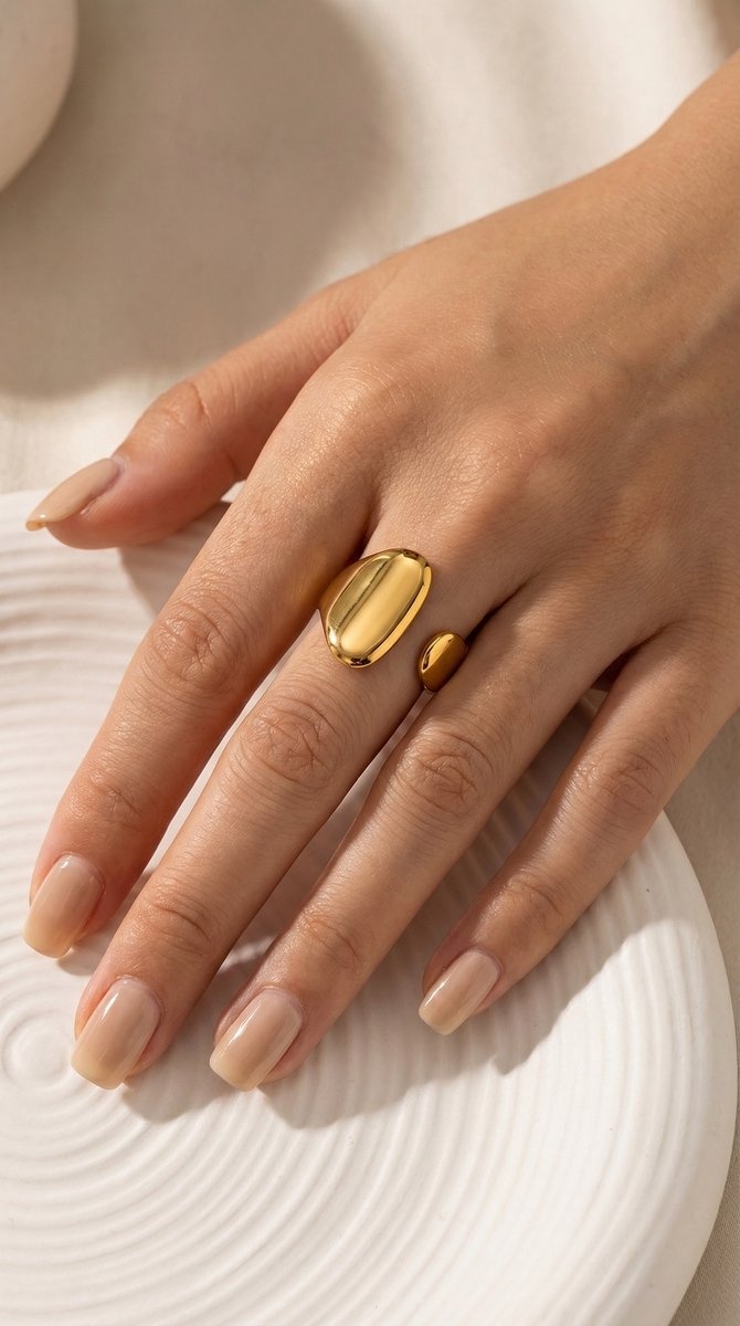 Lundholm Kayla Ring Dames – Premium Stainless Steel 2.5 Micron PVD Gold Plated – Statement Ring – Verstelbaar One Size – Scandinavisch Design