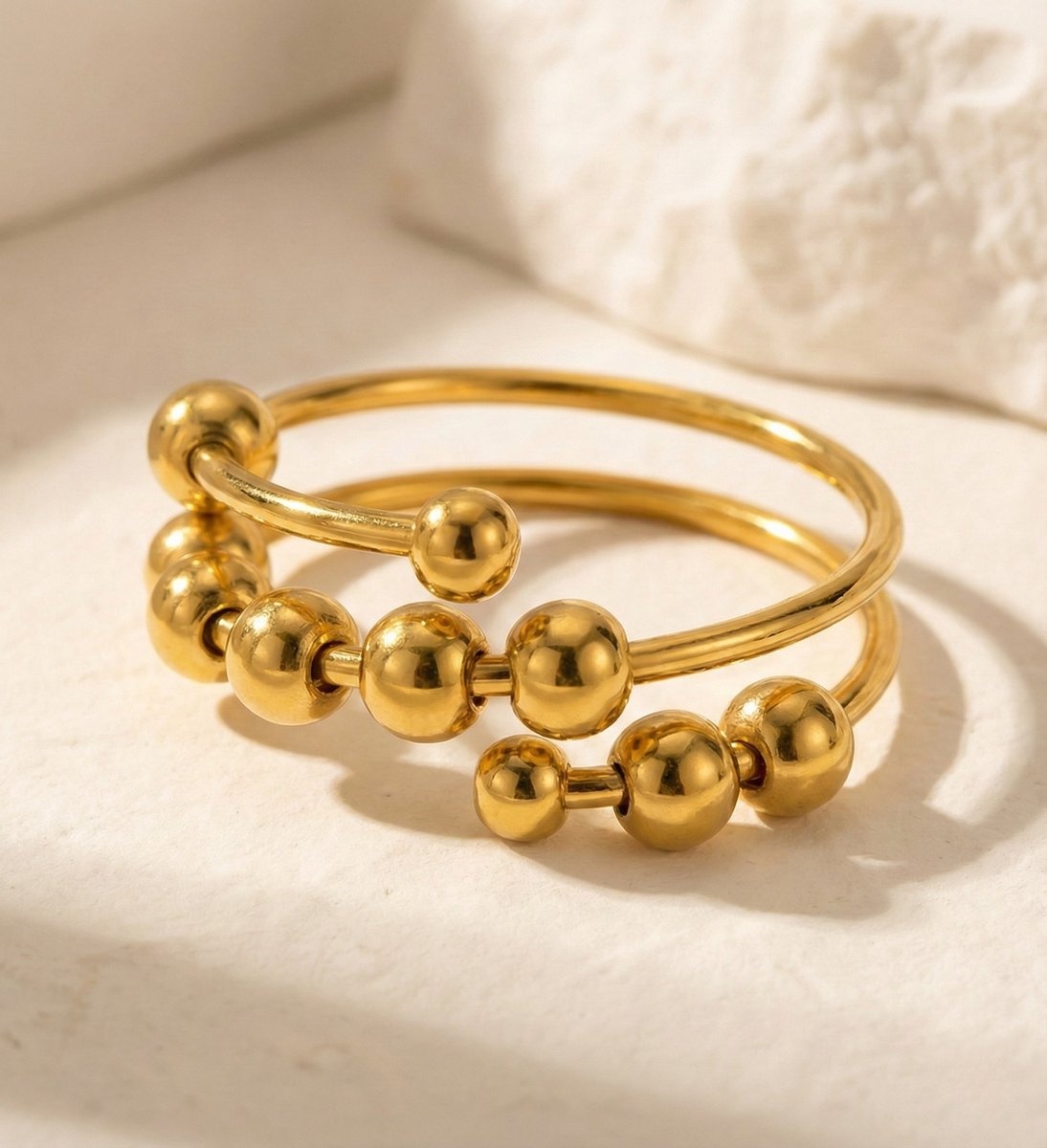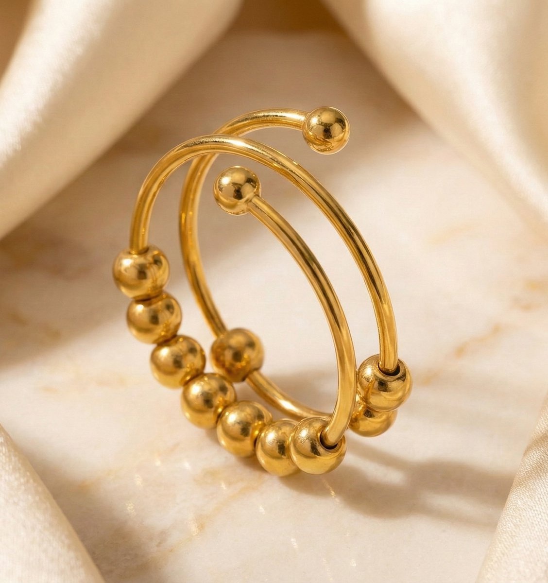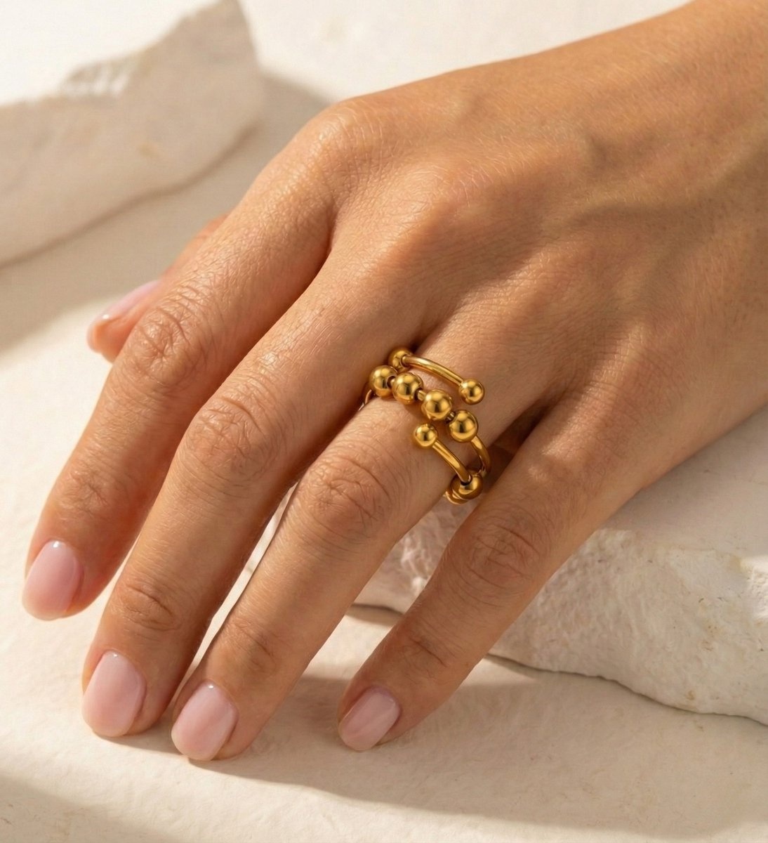 De Lauren ring is perfect voor vrouwen die houden van minimalistische sieraden met een speels detail. Draag haar solo voor een moderne look of combineer met andere goudkleurige ringen voor een stijlvolle layered uitstraling. Ideaal voor dagelijks gebruik en momenten waarop je behoefte hebt aan een subtiele fidget beweging.