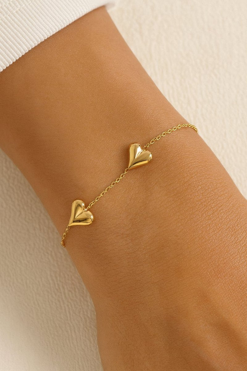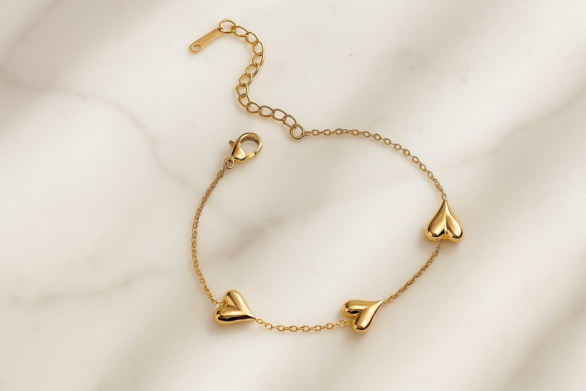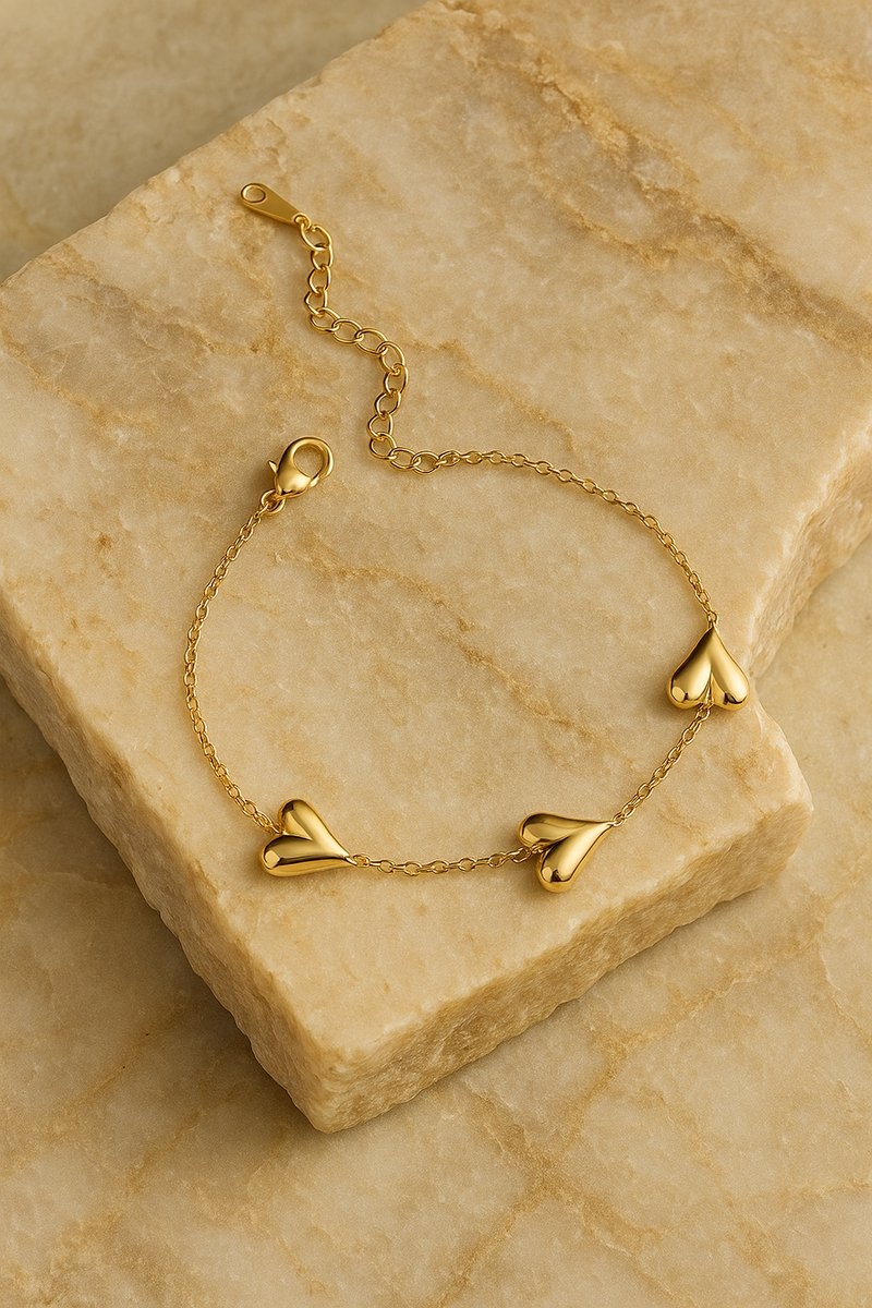 Lundholm Hartjes Armband – Goudkleurig (16.5 cm) Voeg een vleugje liefdevolle elegantie toe aan je look met de Lundholm hartjes armband . Deze verfijnde armband is gemaakt van premium stainless steel. De subtiele hartjes van 1.2 cm breed hangen speel Lees meer