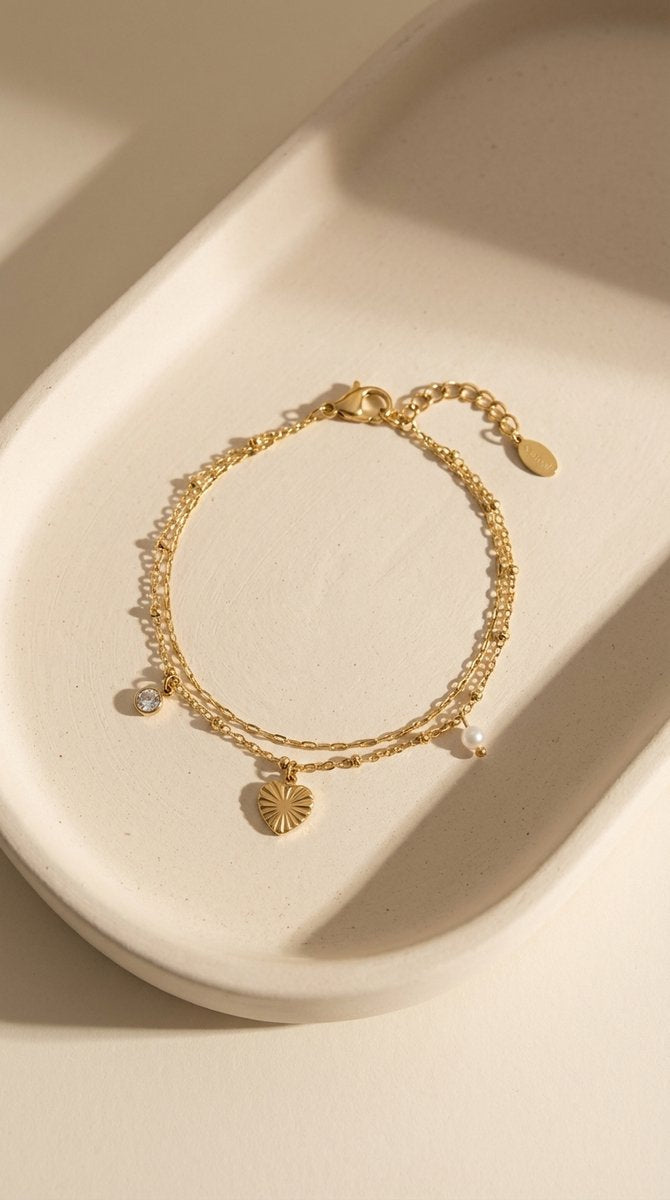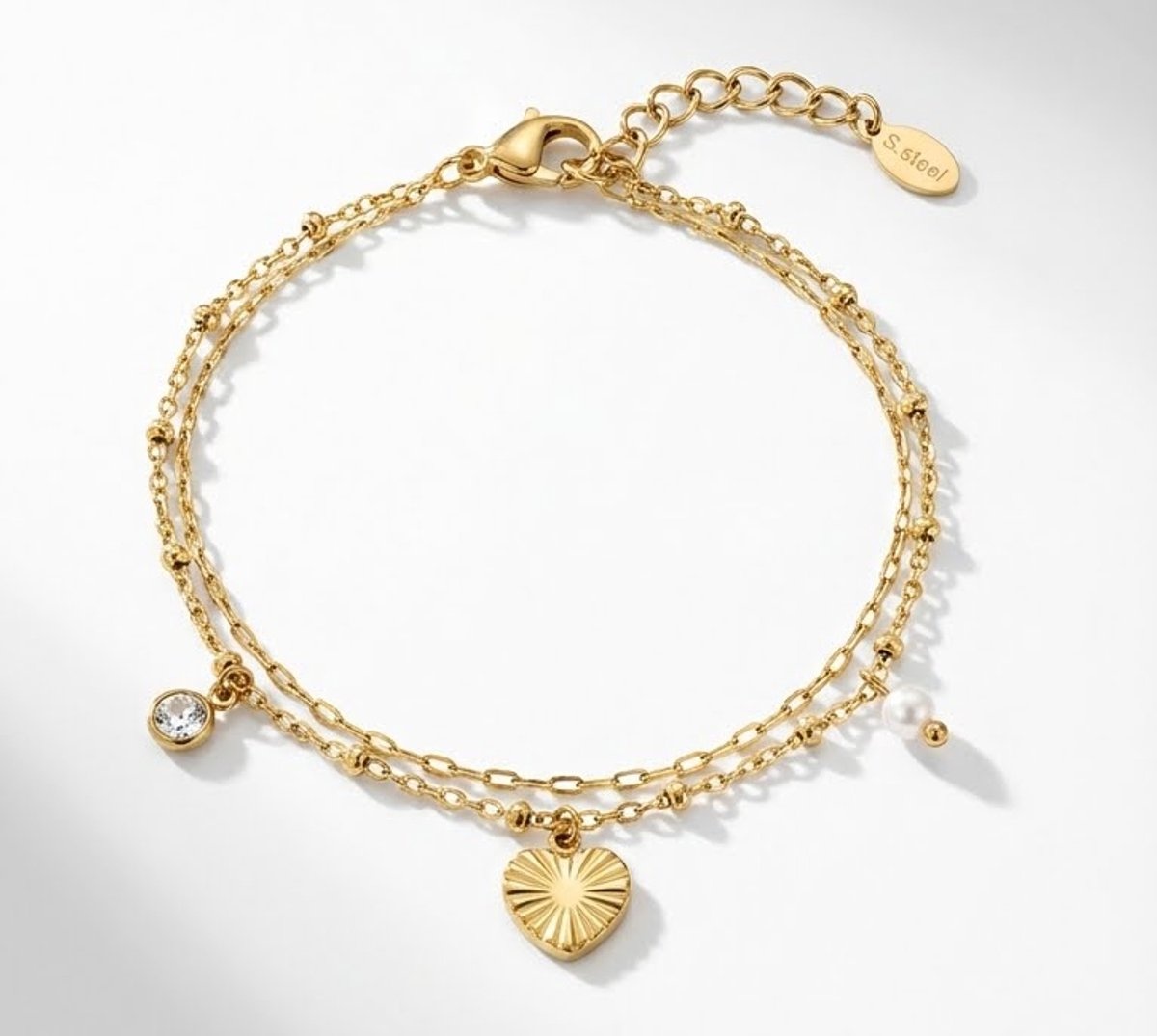 Lundholm Lizzy armband dames goudkleurig – dubbel laags layered design – premium stainless steel 2.5 micron PVD gold plated – Lizzy serie – Scandinavisch design – sieraden cadeau voor haar