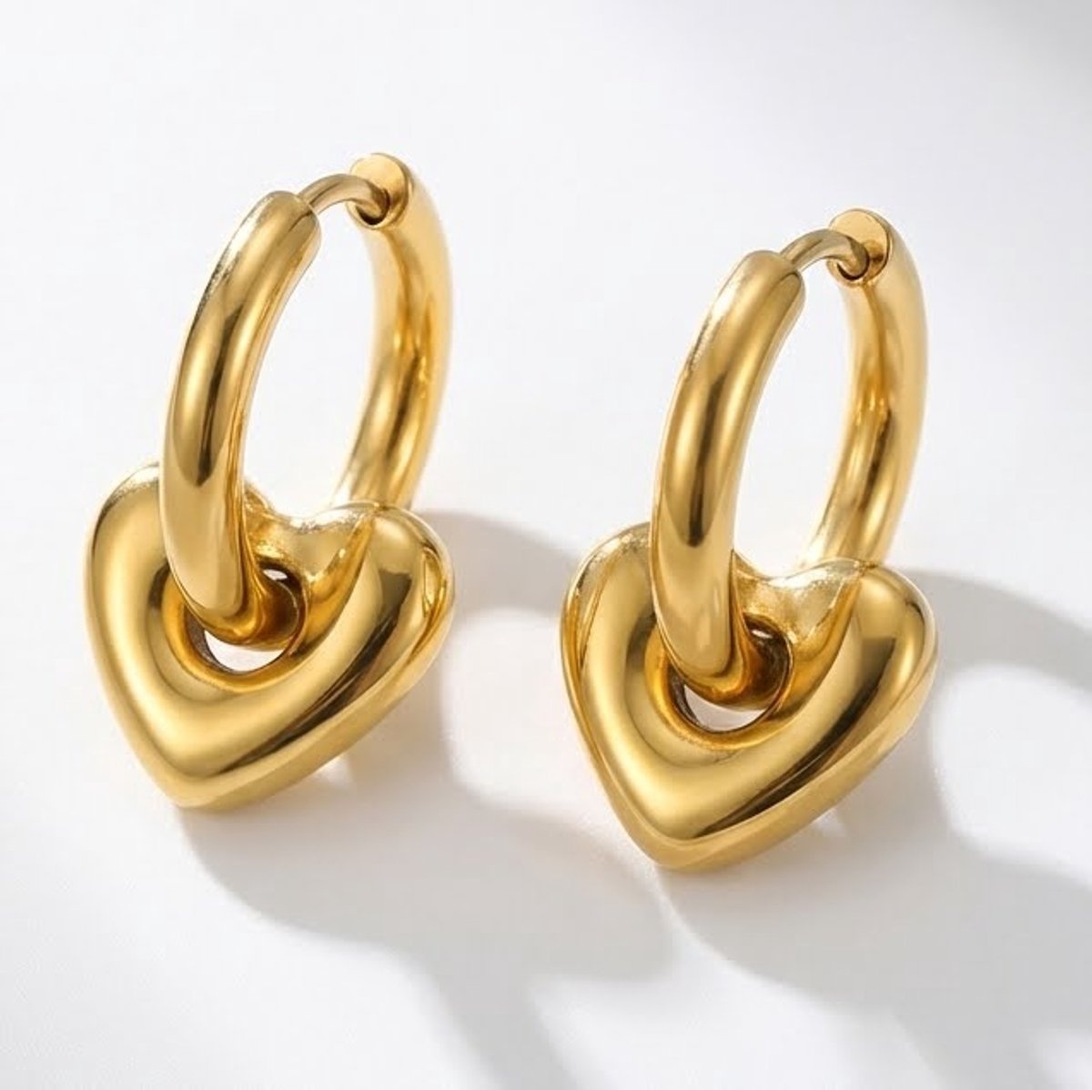 Lundholm Lovea oorbellen dames goudkleurig – oorringen met hartjes hanger – premium stainless steel 2.5 micron PVD gold plated – Lovea serie – Scandinavisch design – sieraden cadeau voor haar