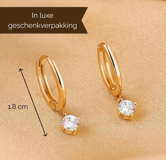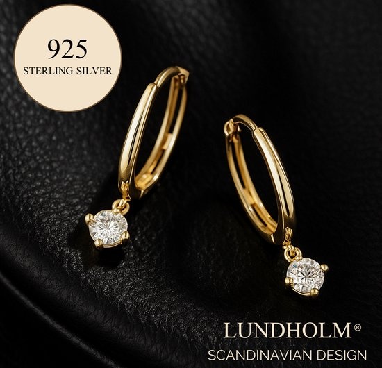 Lundholm Oorringen met Zirkonia Hanger – 925 Sterling Silver Gold Plated (1.8 cm)