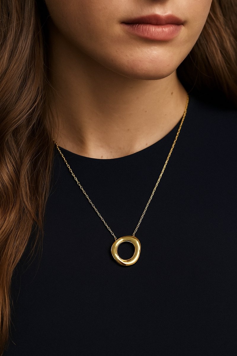 Lundholm Ketting Dames Goudkleurig – Premium Stainless Steel – Chunky Rondje Hanger – Statement Ketting 45 cm - Cadeau voor Vrouw – Luxe Geschenkverpakking