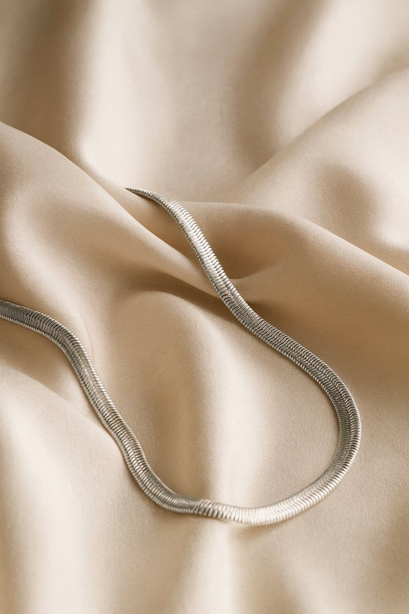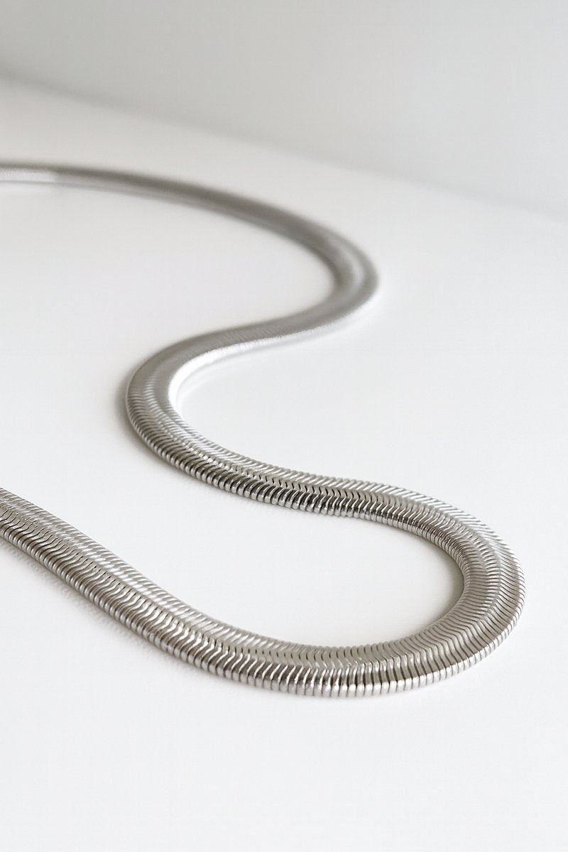 Een krachtige basic met Scandinavische klasse: de zilverkleurige Elsa ketting heeft een brede, gevlochten structuur van 8 mm die soepel om de hals valt. Gemaakt van premium stainless steel met hoogglans afwerking. De lengte is 50 cm met 5 cm verlengketting, zodat je ‘m perfect positioneert—solo als statement of gelaagd met fijne chains.