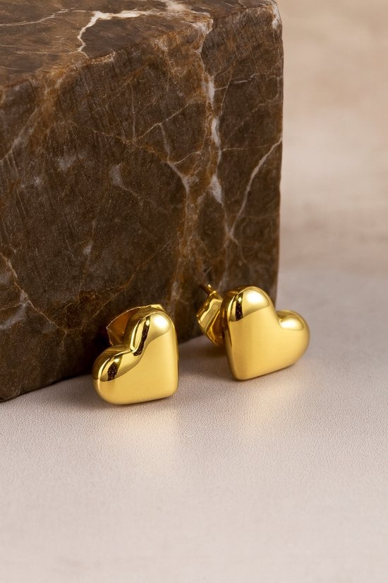 Lundholm Kleine Oorknopjes Dames Goudkleurig Hartje – Premium Stainless Steel – 18K Goud Verguld – Kleine Massieve Hartjes (6 x 8 mm) Oorbellen – Subtiel & Elegant