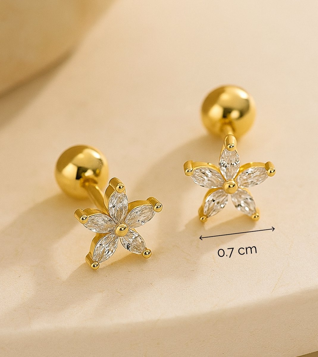 Lundholm Luxe 925 Sterling Zilver Gold Plated Kleine Oorbellen Dames Bloem - Gouden Oorknopjes Bloemen Design Minimalistisch - Vrouwen Cadeautjes - Scandinavisch Design