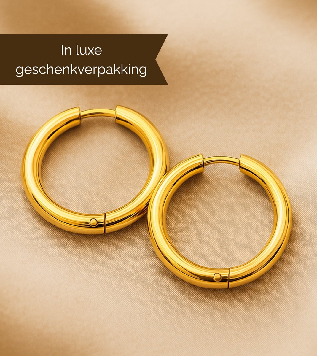 Lundholm Luxe Klassieke Hoops - Oorringen Dames Goudkleurig - Premium Stainless Steel Gold PVD Plated - Waterproof & Hypoallergeen - Luxe Cadeau Verpakking