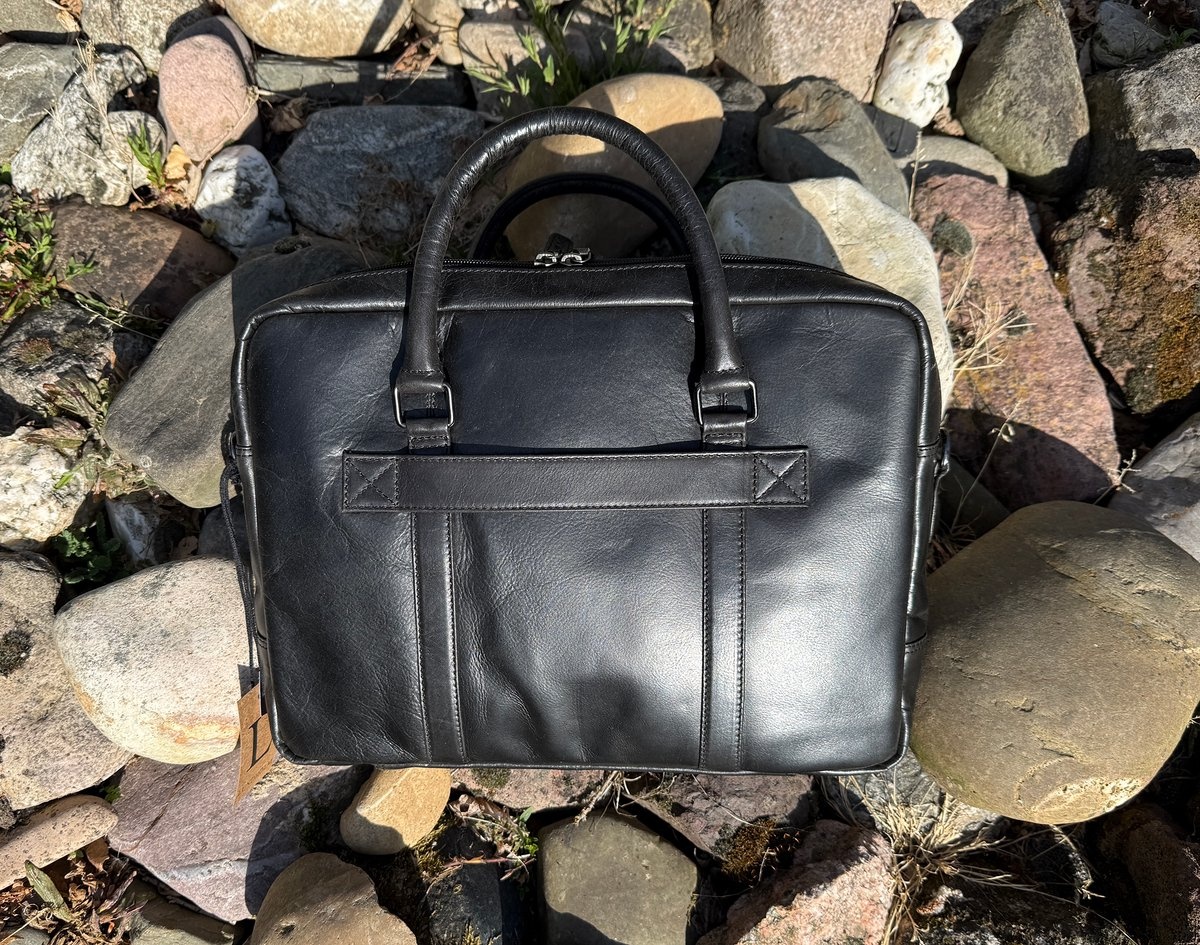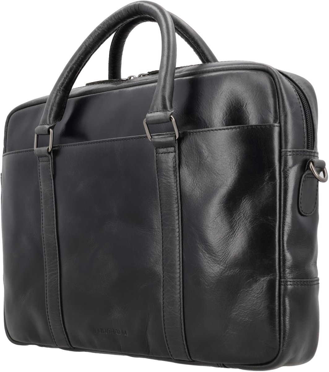 Lundholm luxe leren laptoptas 15 inch leer heren Zwart werktas schoudertas mannen aktetas - Werktas mannen topkwaliteit echt leer - mannen cadeautjes - Luxe Laptoptas Zwart