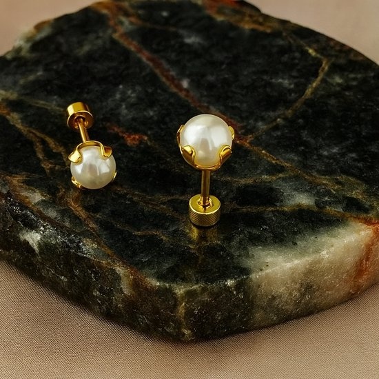 Lundholm Luxe Oorstekers Dames Parel Goud – Premium Stainless Steel – 18K Goud Verguld – Met Imitatie Parel (6 mm) - cadeau voor vriendin tip - vrouwen cadeautjes