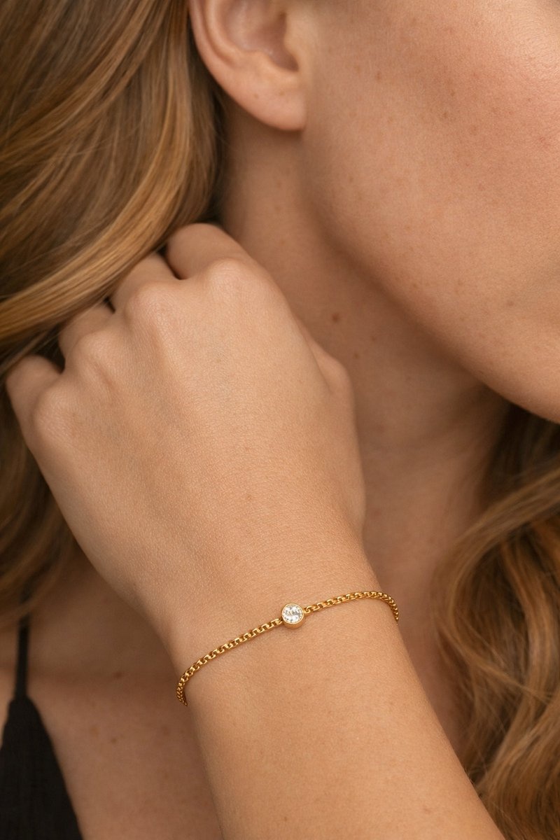 Ontdek de subtiele luxe van de Lundholm armband met centrale zirkonia. Deze verfijnde armband is gemaakt van hoogwaardig premium stainless steel, afgewerkt met een duurzameplating, en voorzien van een sprankelende zirkonia steen in het midden. Elegant, tijdloos en veelzijdig – een prachtig sieraad dat perfect past bij zowel casual outfits als feestelijke gelegenheden.