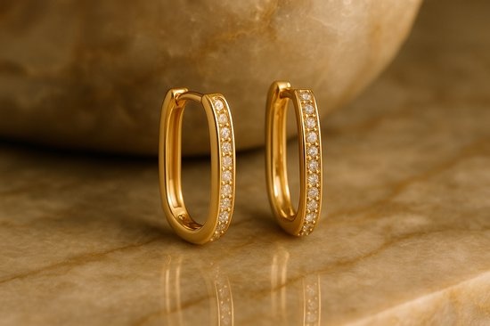 Lundholm Luxe Rechthoekige Oorbellen (2 x 1.3 cm) – Premium Stainless Steel, 18K Gold Plated met Zirkonia – Geschenkverpakking