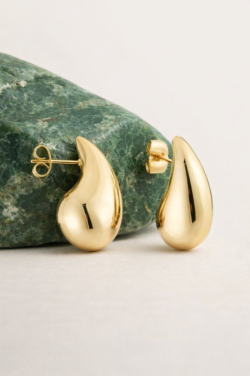 Laat verfijnde elegantie schitteren met de Lundholm druppel oorknopjes. Deze stijlvolle goudkleurige oorbellen zijn gemaakt van hoogwaardig premium stainless steel met een duurzame vergulde afwerking en ontworpen in een elegante druppelvorm. De zachte glans en ronde vormen geven deze oorbellen een luxueuze, vrouwelijke uitstraling die bij elke gelegenheid past.