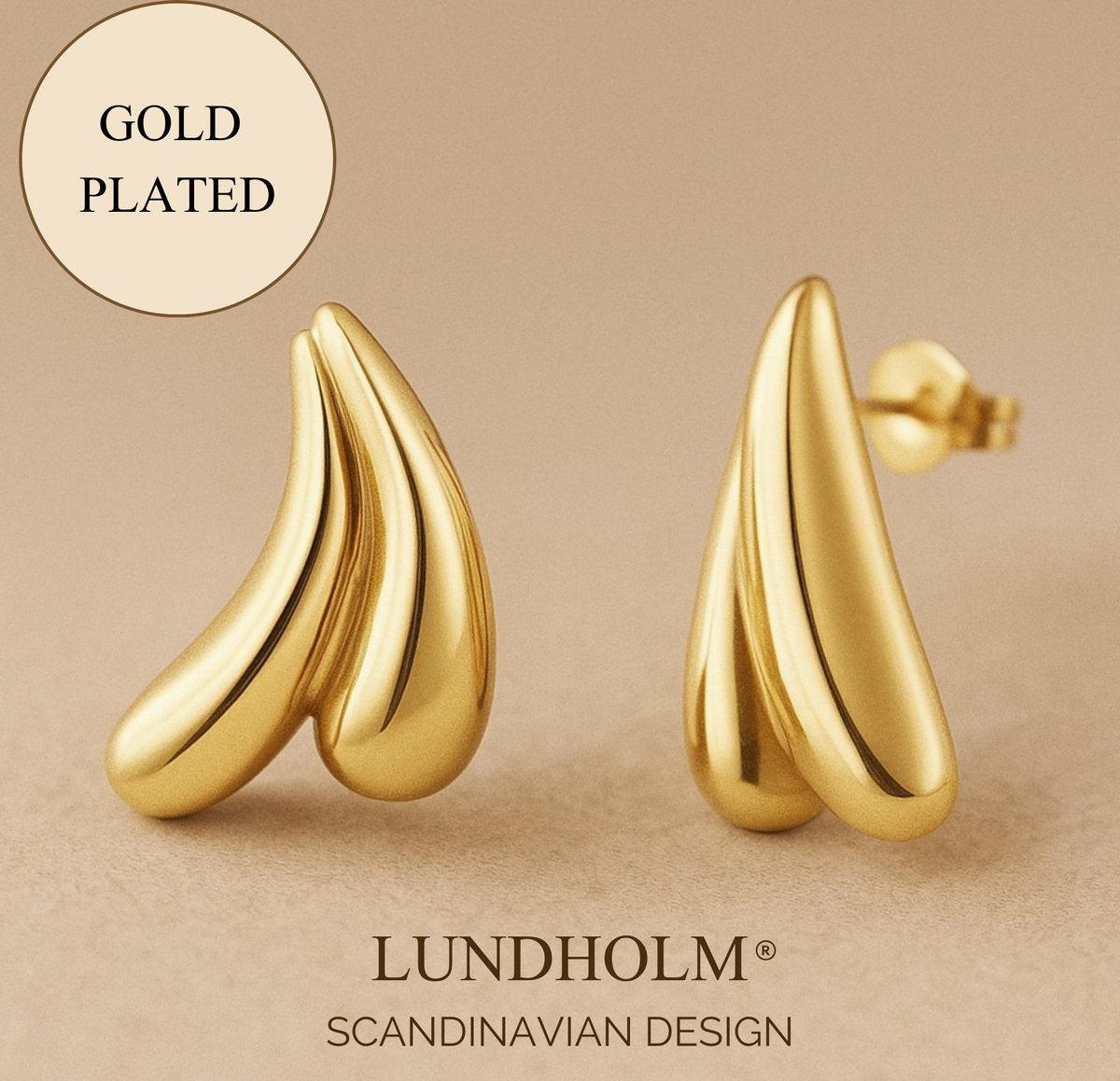 Lundholm Oorknopjes Dames – Premium Stainless Steel Gold Plated – Sculptural Studs (1,5 × 2,8 cm) Oorbellen Goudkleurig - Cadeau voor Haar - Inclusief Luxe Geschenkverpakking