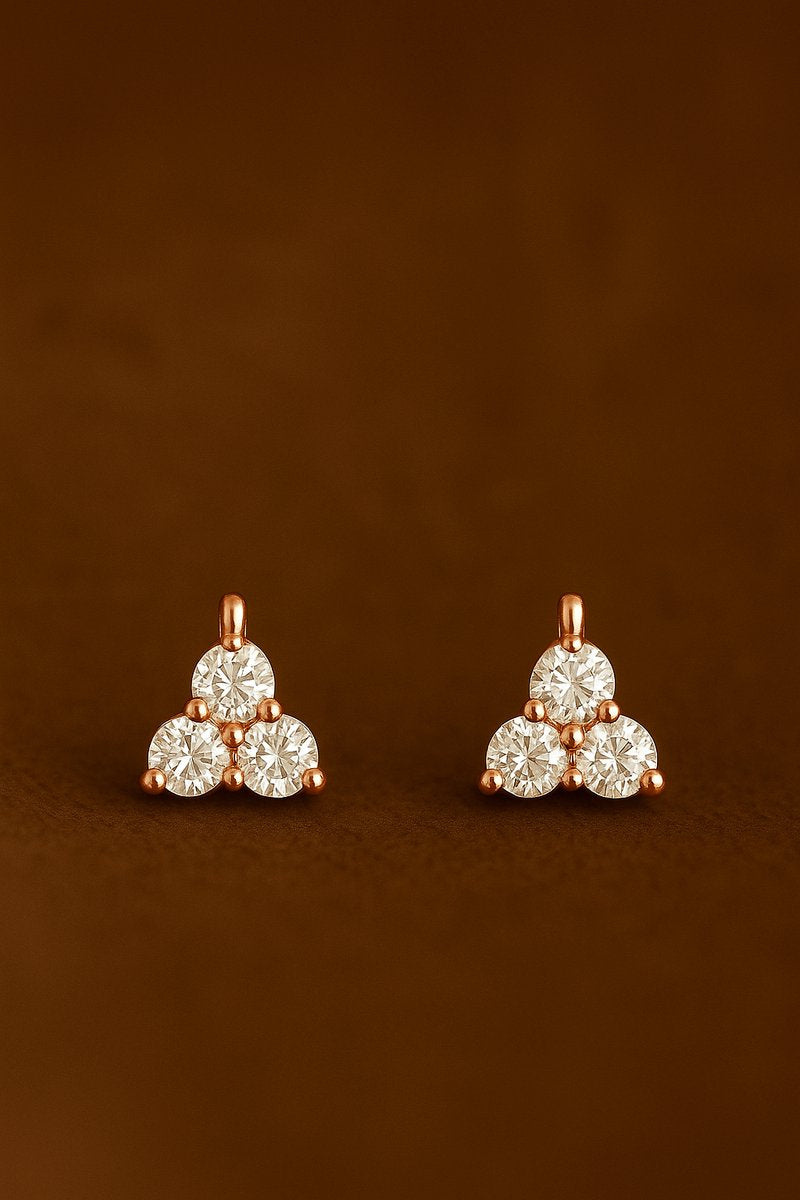 Lundholm Oorknopjes Dames Roségoud - 925 Sterling Zilver - 3 Bolletjes Studs met Zirkonia - Elegant & Tijdloos - Luxe Geschenkverpakking