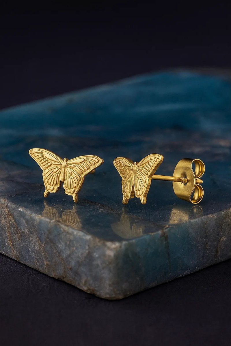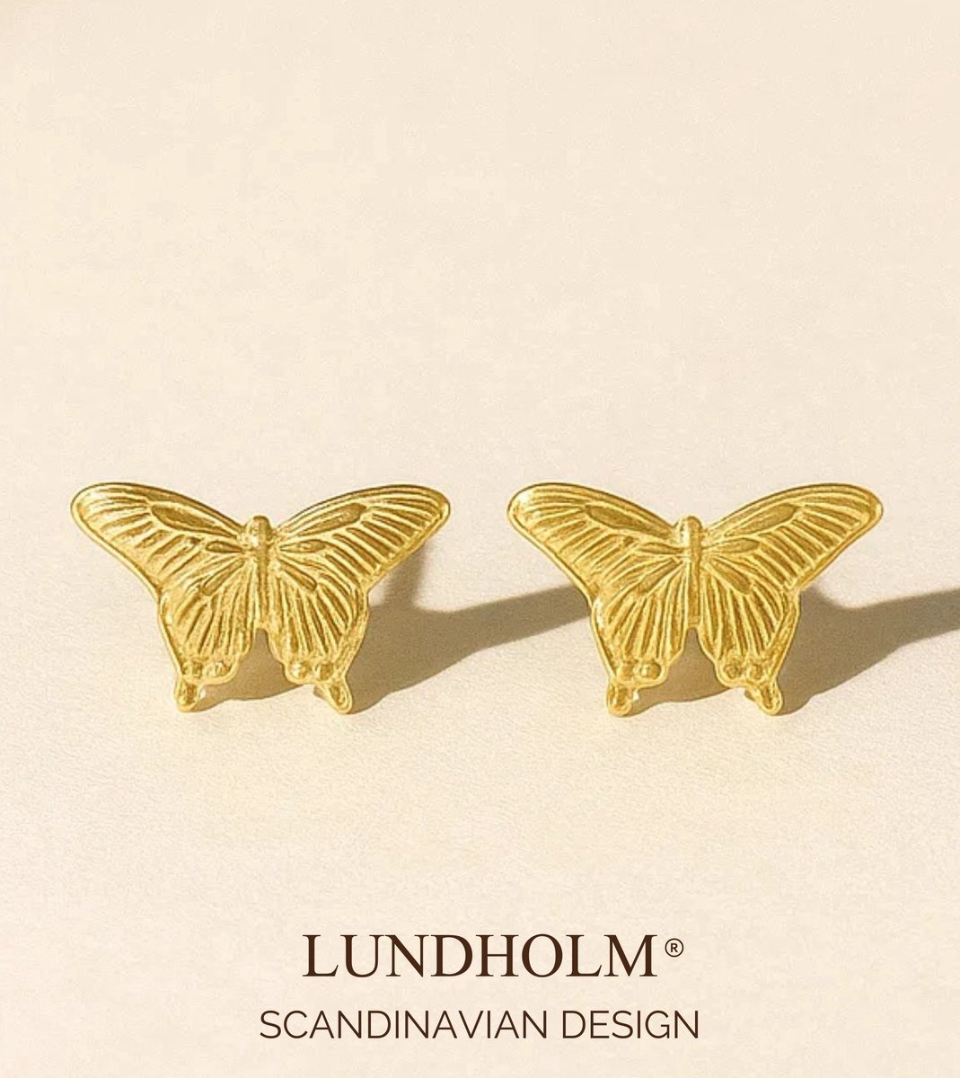 Laat jouw stijl fladderen met de Lundholm vlinder oorknopjes. Deze verfijnde goudkleurige oorbellen zijn gemaakt van hoogwaardig premium stainless steel met een duurzame vergulde afwerking, en ontworpen in de vorm van een elegante vlinder. Een symbool van vrijheid, schoonheid en vrouwelijkheid – perfect voor elke dag of een bijzondere gelegenheid.
