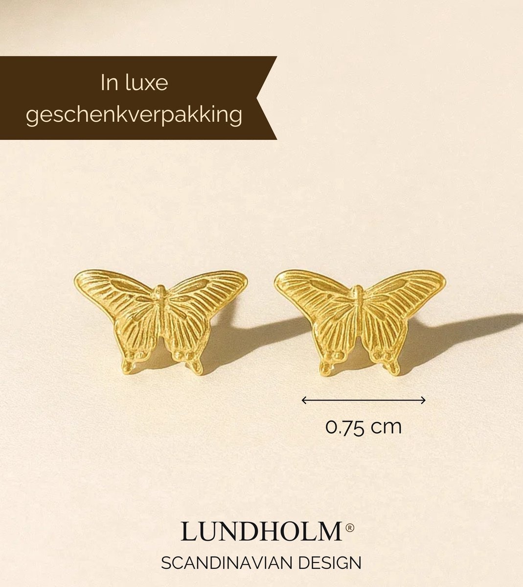 Lundholm Oorknopjes Dames Vlinder - Premium Stainless Steel Gold Plated - Oorbellen Goudkleurig Klein - Kerstcadeautje voor haar, vrouwen cadeautjes tip - Scandinavisch Design