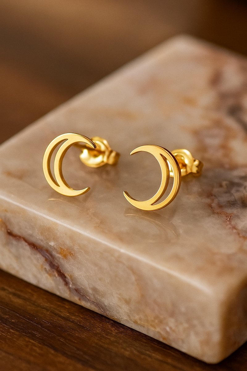 Lundholm Oorknopjes Dames Zilverkleurig of Goudkleurig Maan - Premium Stainless Steel - Silver Plated - Halve Maan Oorbellen (1 cm) - Elegant & Tijdloos - Luxe Geschenkverpakking