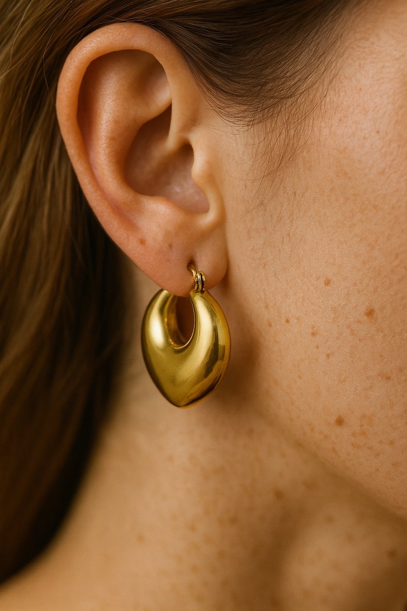 Elegante, tijdloze oorringen met zachte, volle lijnen: de Svala hoops geven elke look een moderne Scandinavische touch. Vervaardigd uit premium stainless steel met gold plated hoogglans en een royale diameter van 3,5 cm—stijlvol bij knitwear, blazers én avondjurken.