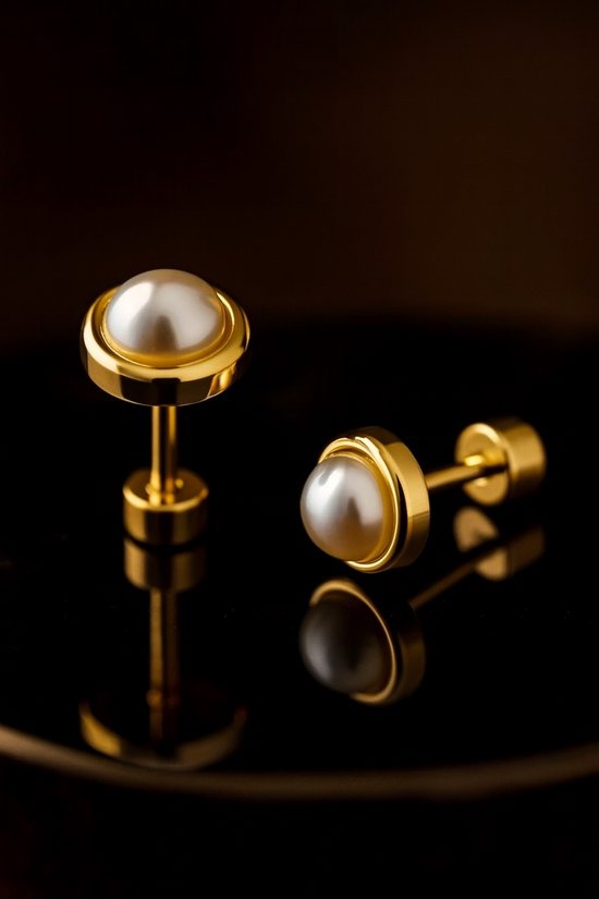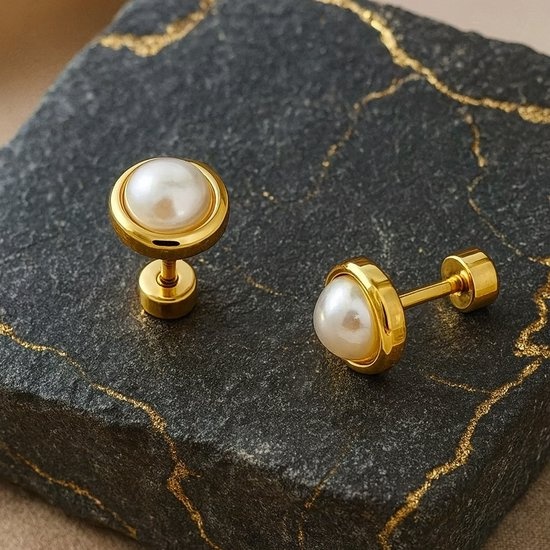 Lundholm Oorstekers Dames Parel Goud – Premium Stainless Steel – 18K Goud Verguld