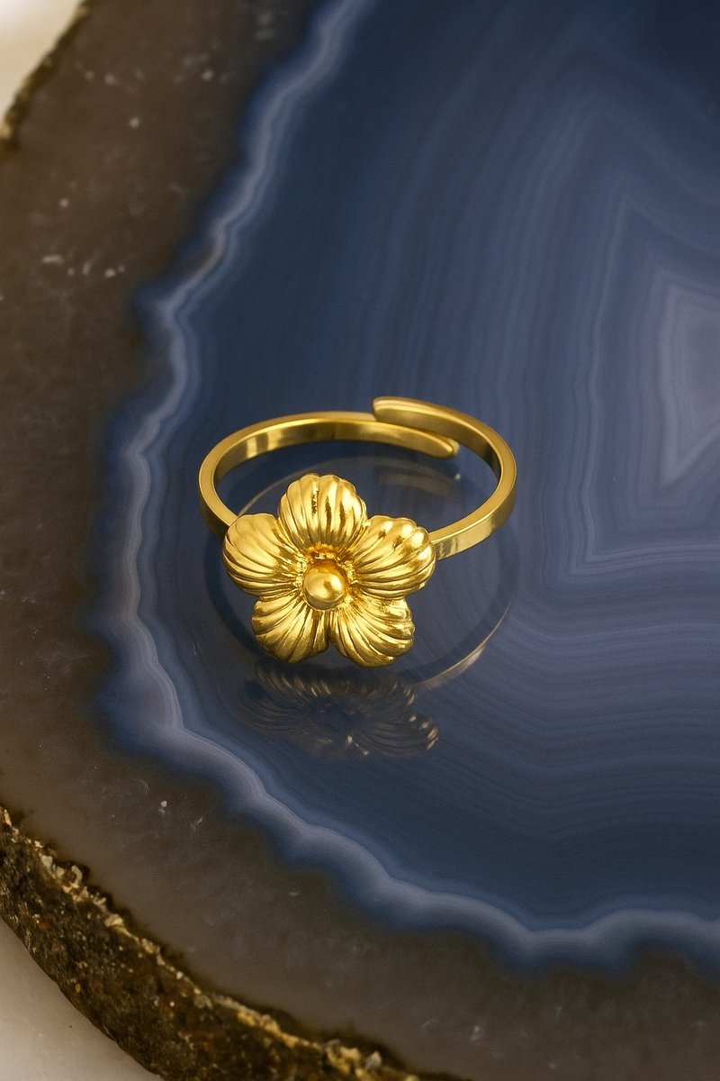 Lundholm Ring Dames Goudkleurig – Premium Stainless Steel – Verstelbare Bloemenring – Elegant & Tijdloos – Luxe Cadeautip voor Haar