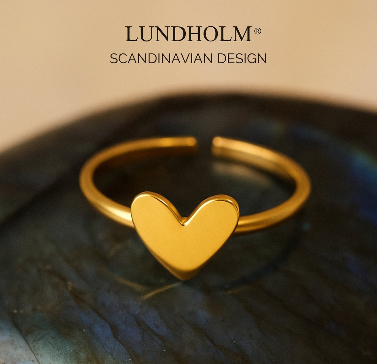 Lundholm Ring Dames Goudkleurig Hart – Premium Stainless Steel – Verstelbare Ring met Subtiel Hartje – One Size – Betekenisvol & Elegant – Cadeau voor Haar - Luxe Geschenkverpakking