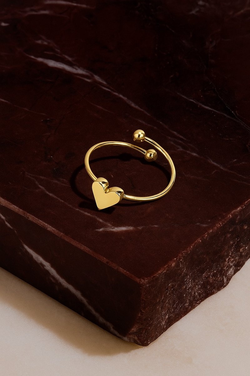 Lundholm Ring Dames Goudkleurig – Premium Stainless Steel – Verstelbare Ring met Klein Hartje – Elegant & Betekenisvol – Luxe Cadeautip voor Haar