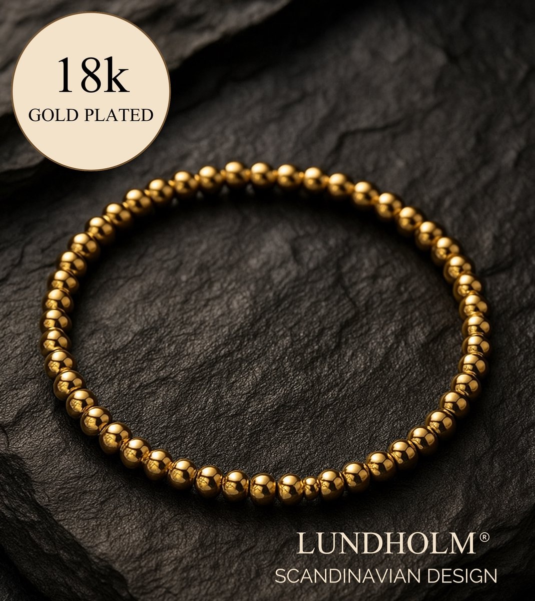 Voeg tijdloze elegantie toe aan je look met de Lundholm elastische kralenarmband. Deze armband is gemaakt van hoogwaardig premium stainless steel, en uitgevoerd met verfijnde kralen van 4 mm dik. Met zijn lengte van 17 cm sluit hij comfortabel om de pols en dankzij het elastische design is hij gemakkelijk te dragen en om te doen.