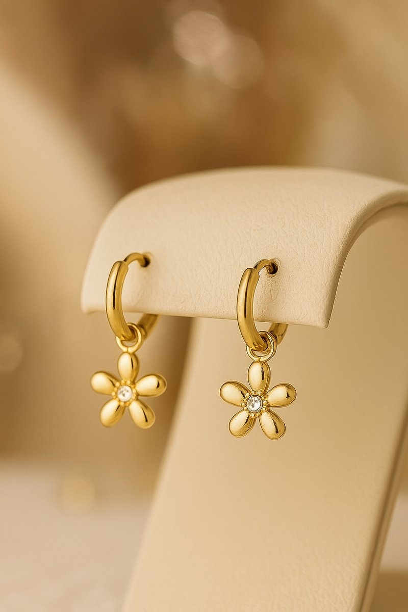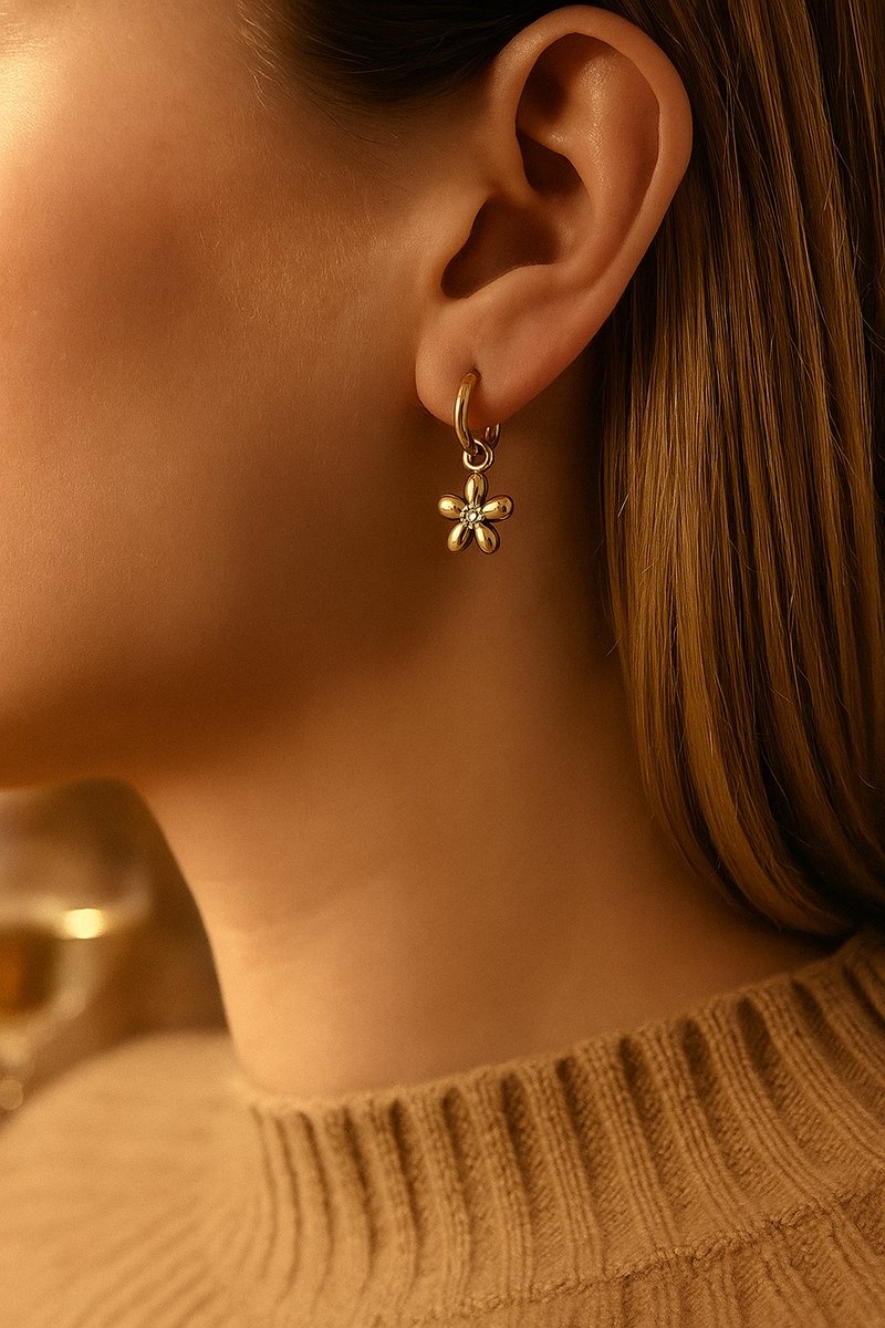 - Elegant detail – oorringen met bloem hanger (2.2 cm)