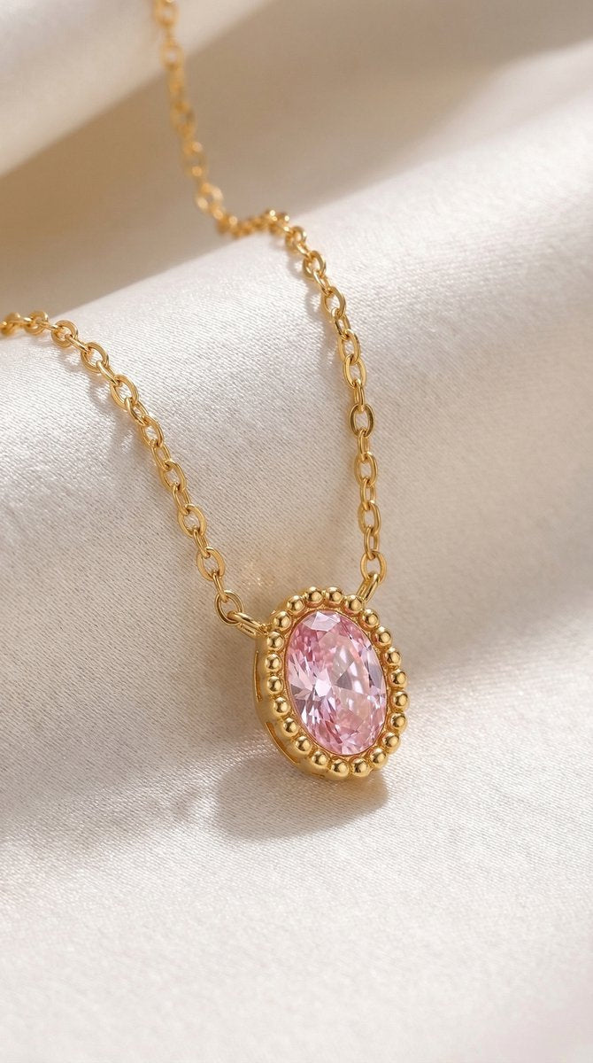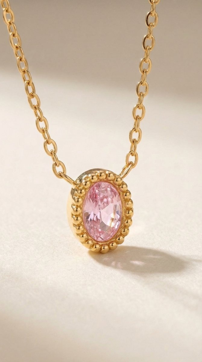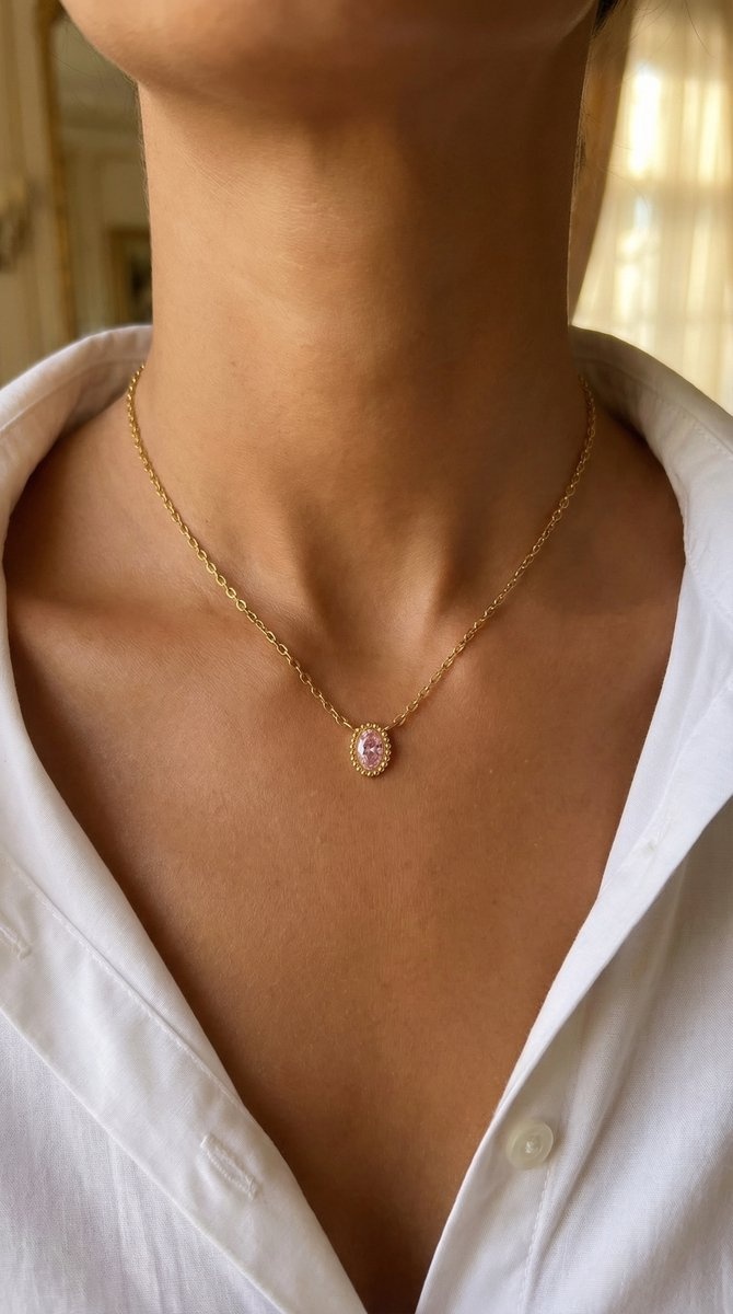 Lundholm Maud Ketting Dames – Premium Stainless Steel 2.5 Micron PVD Gold Plated – Ketting met Roze Zirkonia Hanger – 42 + 5 cm – Scandinavisch Design