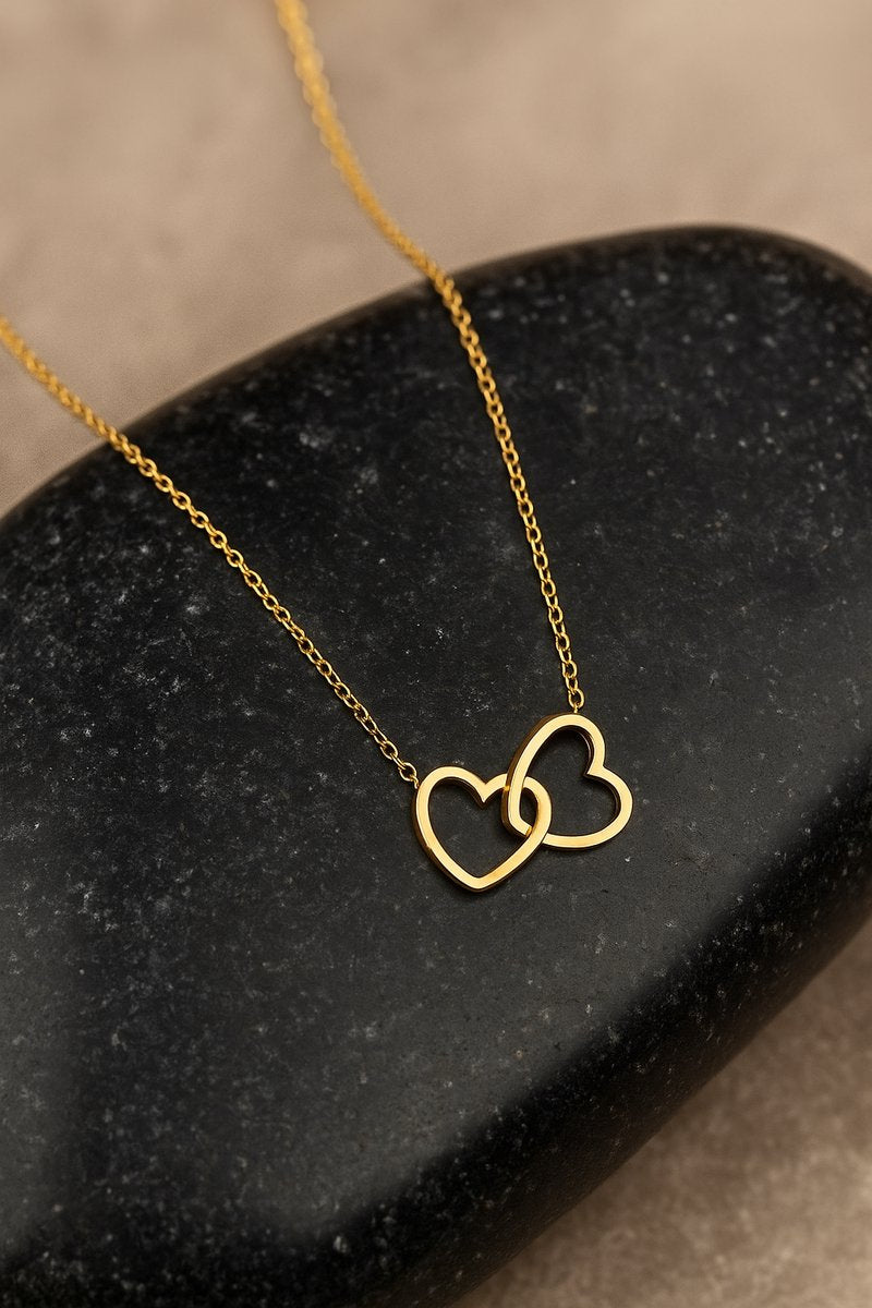 Lundholm Ketting Dames Goudkleurig Dubbel Hart - Premium Stainless Steel - Betekenisvolle Hanger (50 cm) - Elegant & Tijdloos - Luxe Geschenkverpakking
