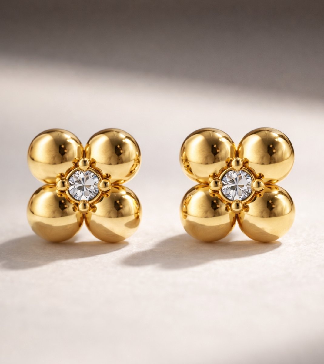 De oorknopjes zijn vervaardigd uit premium stainless steel en afgewerkt met een duurzame PVD gold plated coating. Hierdoor behouden ze hun prachtige goudkleurige glans en zijn ze geschikt voor dagelijks dragen. De Melle oorknopjes zijn hypoallergeen, waterproof en comfortabel voor gevoelige oren.