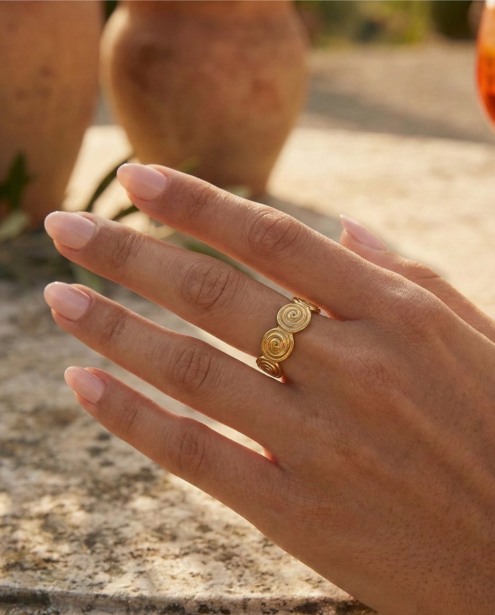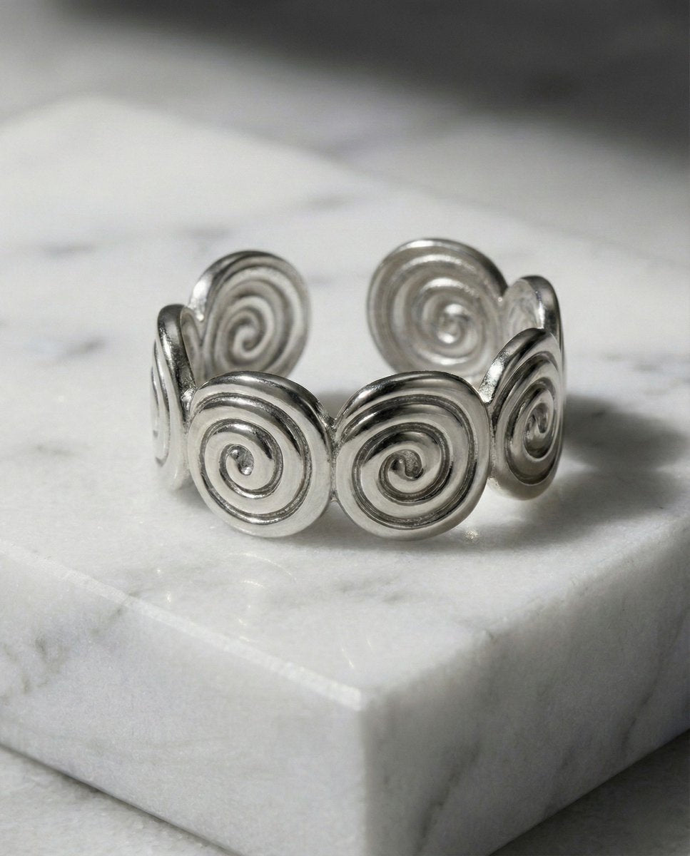 De Lundholm Merel ring is een luxe statement ring met een opvallend spiraaldesign. De ronde, organische vormen creëren een krachtige maar elegante uitstraling. Modern Scandinavisch design met karakter — een ring die direct in het oog springt.