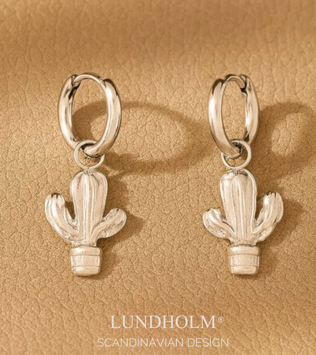 Lundholm Oorringen Dames – Premium Stainless Steel – Zilverkleurige Hoops met Cactus Hanger (1,1 × 3,6 cm) – Oasis Serie – Waterproof & Hypoallergeen – Inclusief Luxe Geschenkverpakking