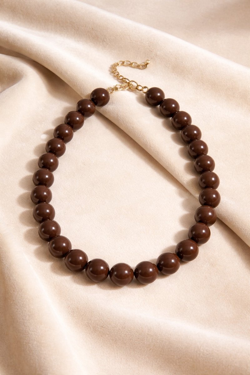 Deze luxe kralenketting uit de Oslo Serie is een krachtig statement sieraad met een warme, elegante uitstraling. De ketting is uitgevoerd met grote bruine hars kralen van 15 mm, zorgvuldig gecombineerd met een premium stainless steel gold plated sluiting. Het resultaat is een stijlvolle, moderne ketting die perfect past bij zowel een minimalistische als een meer uitgesproken look.