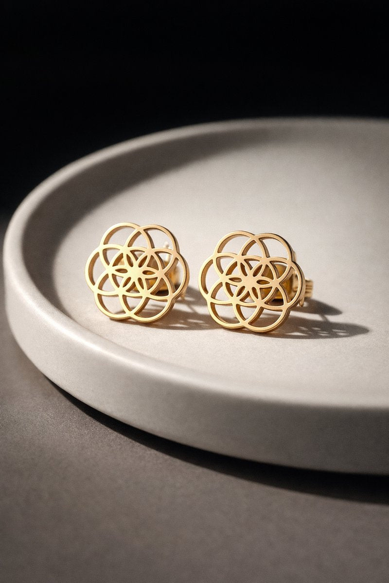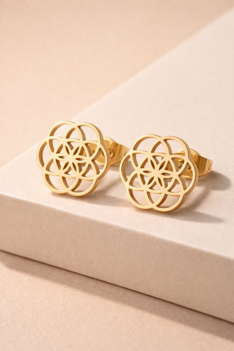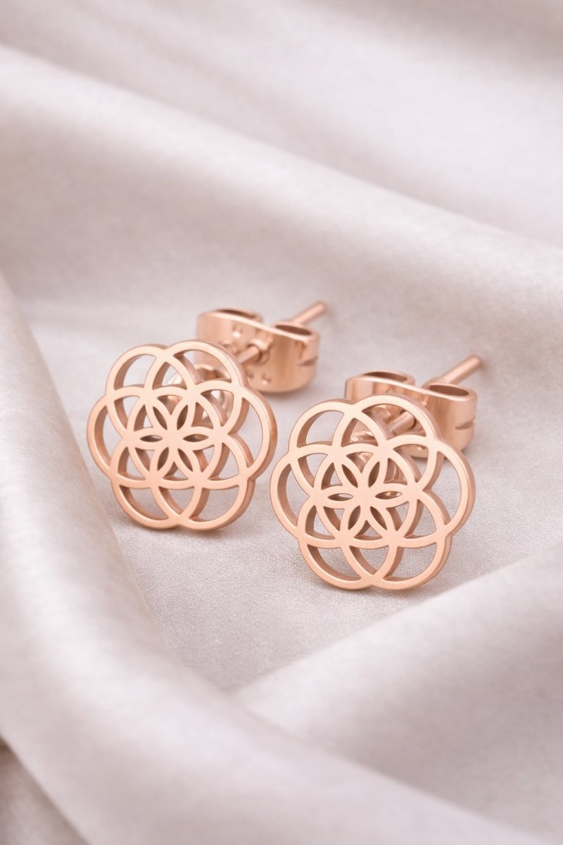 Lundholm Oorknopjes Dames Bloem des Levens Zilver PVD Plated – Premium Stainless Steel Jewellery - Cadeau Vrouw - My Pia Serie - Flower of Life Oorbellen Zilver Plated – Perfect Cadeau voor Vrouw