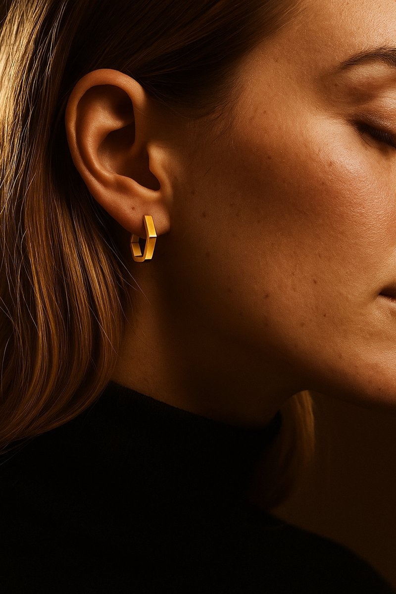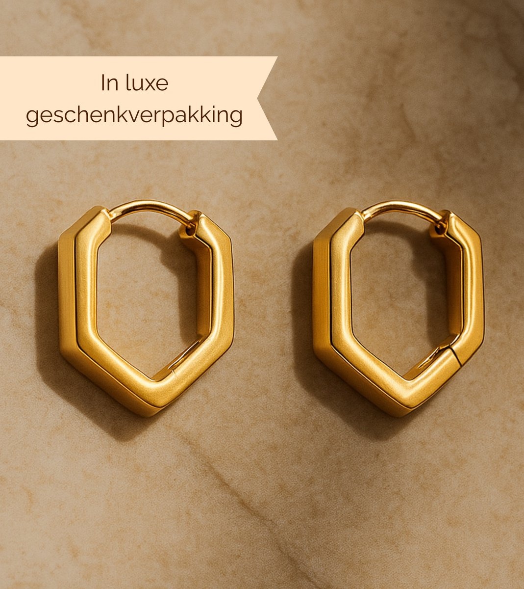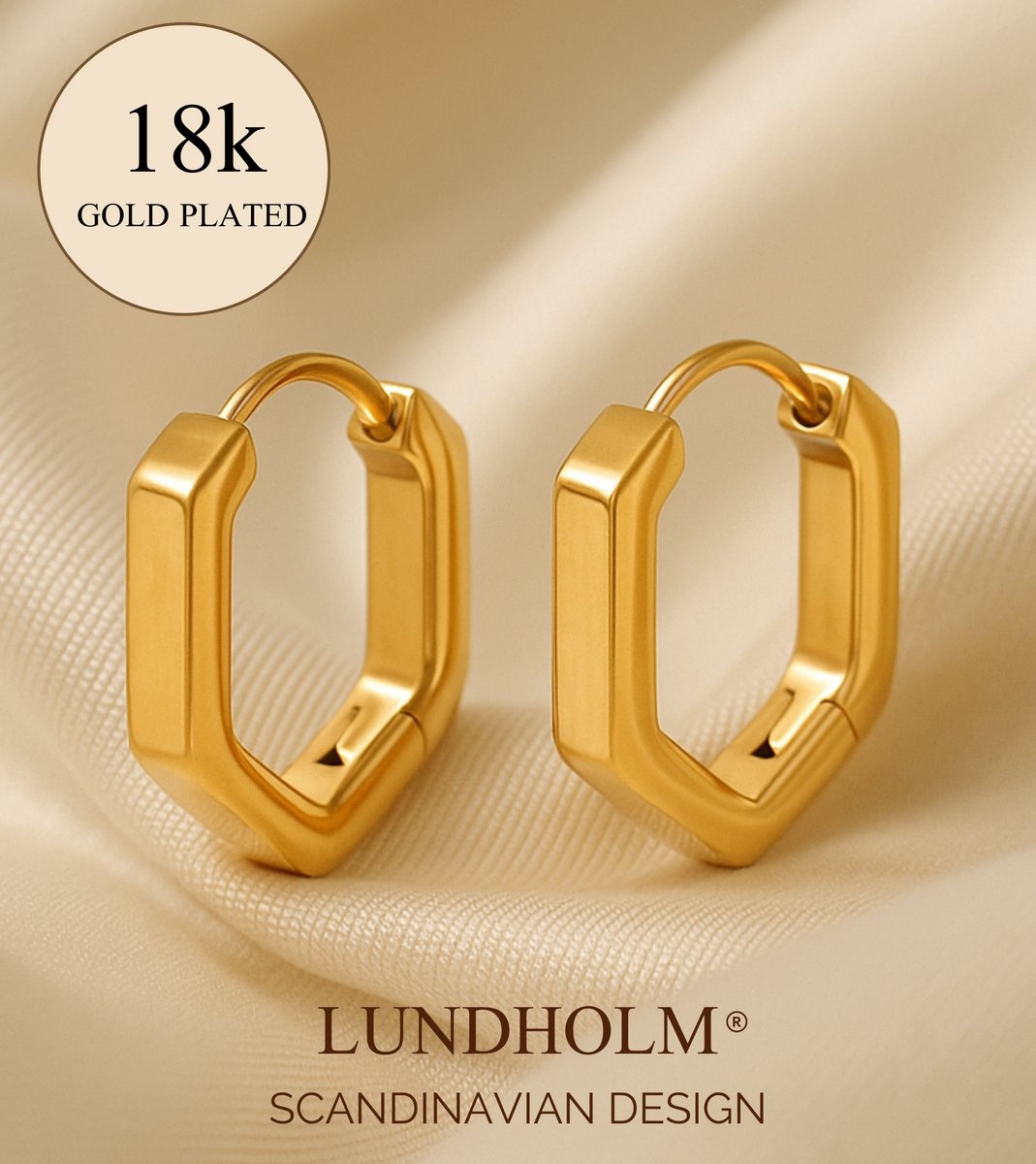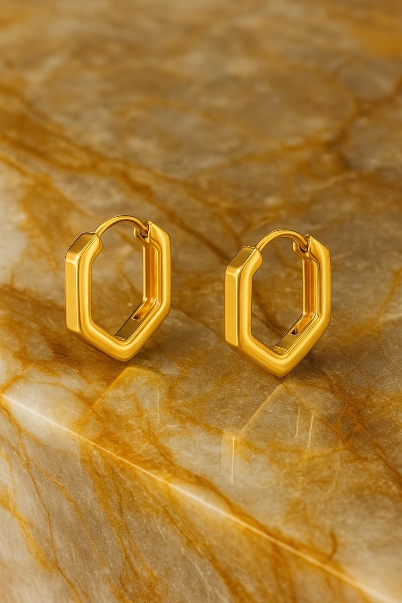 Lundholm Luxe Oorringen Dames Goudkleurig – Premium Stainless Steel Gold PVD Plated – Hexagon Geometrisch Design – Elegant & Modern – Waterproof & Hypoallergeen – Cadeau voor Vrouw