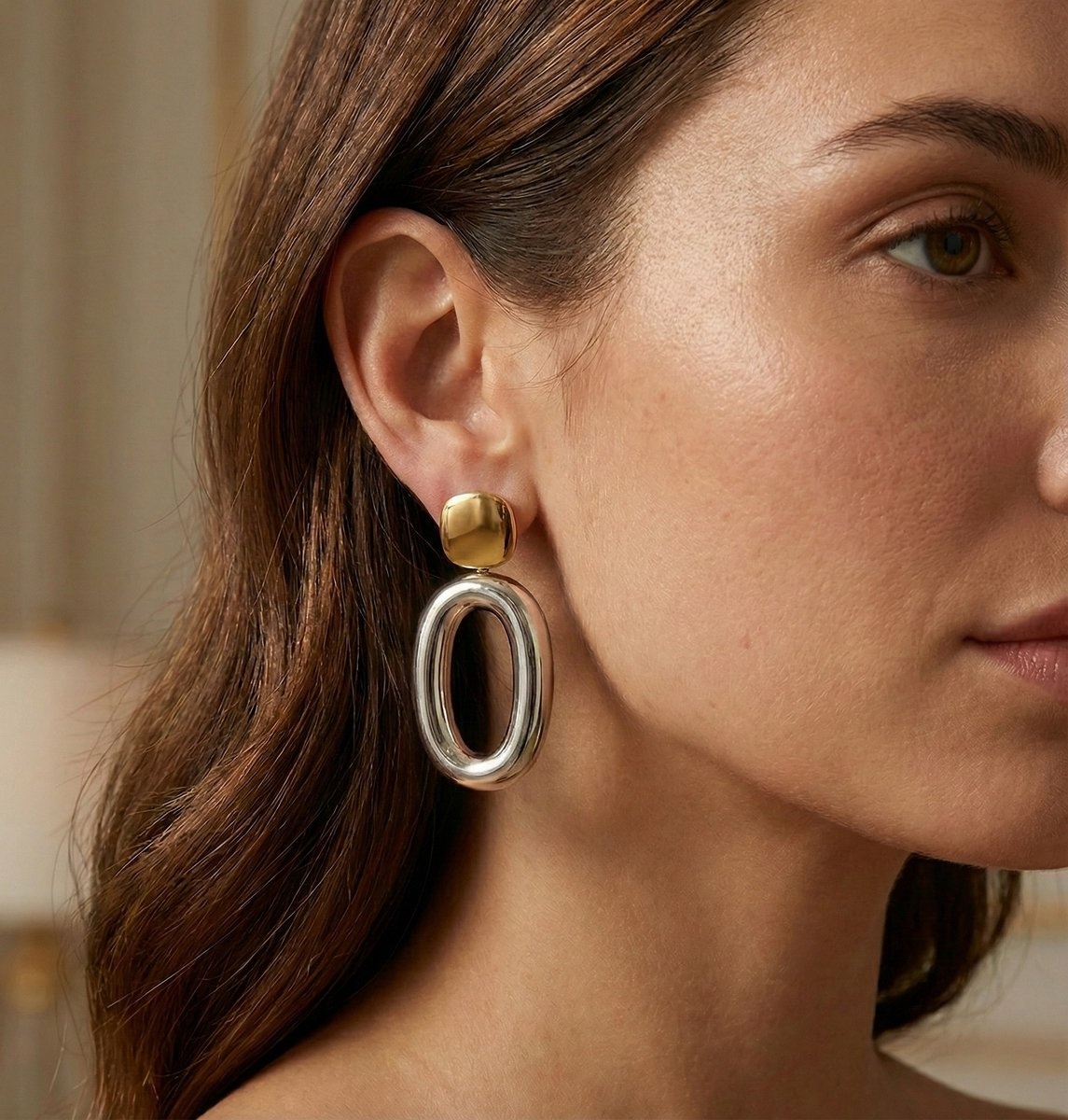 De oorbellen zijn vervaardigd uit premium stainless steel en afgewerkt in goud- en zilverkleur. Ze zijn hypoallergeen, waterproof en geschikt voor dagelijks dragen, ook bij gevoelige oren.